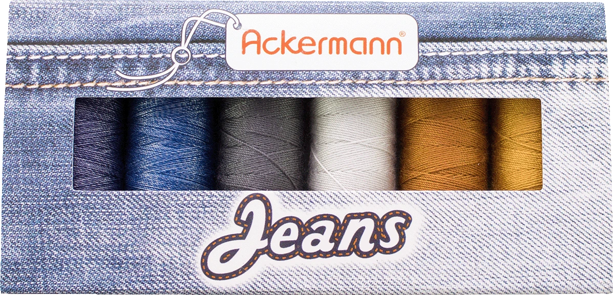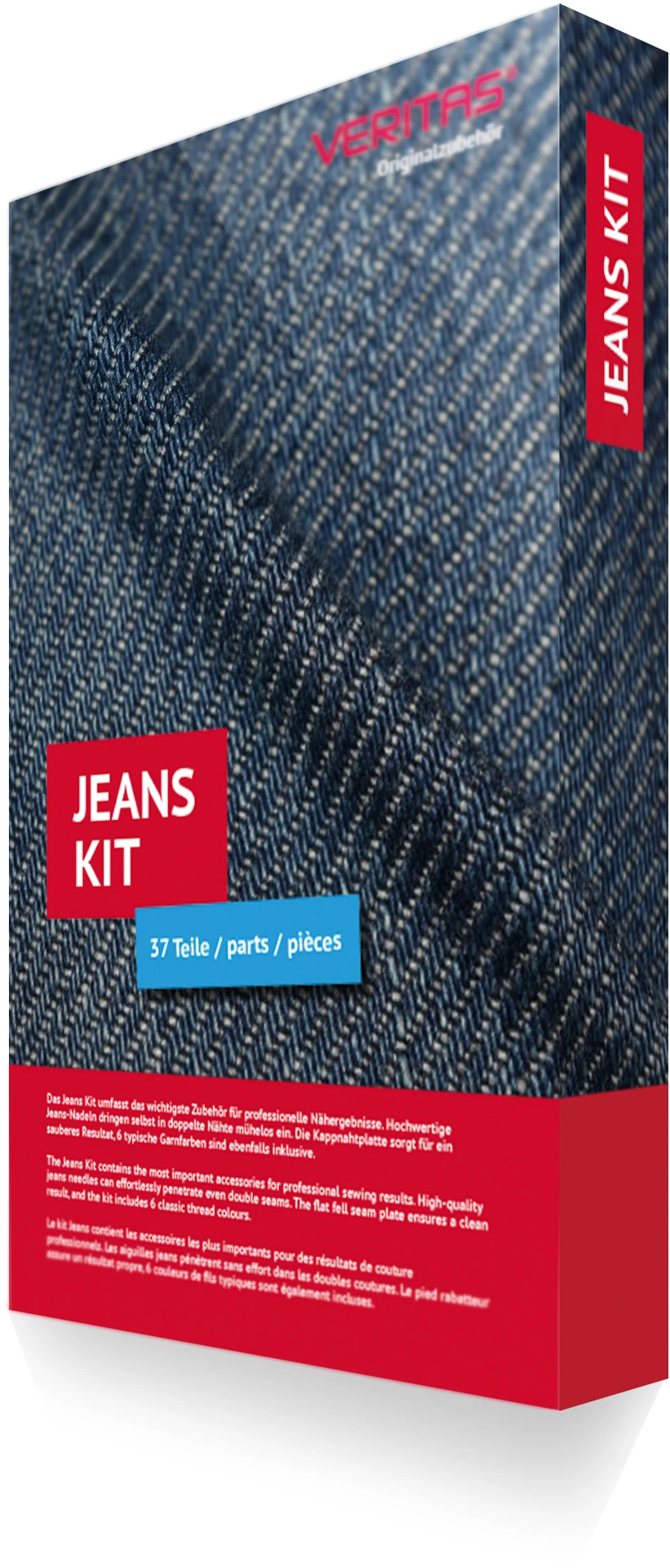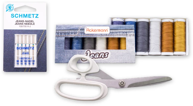 Sada na džíny obsahuje nejdůležitější příslušenství pro profesionální šití džínoviny.