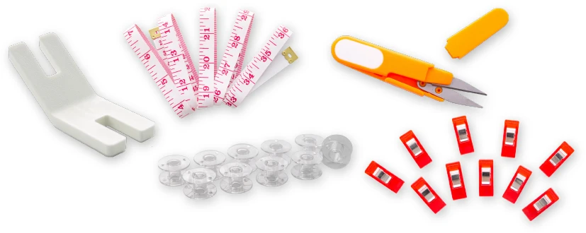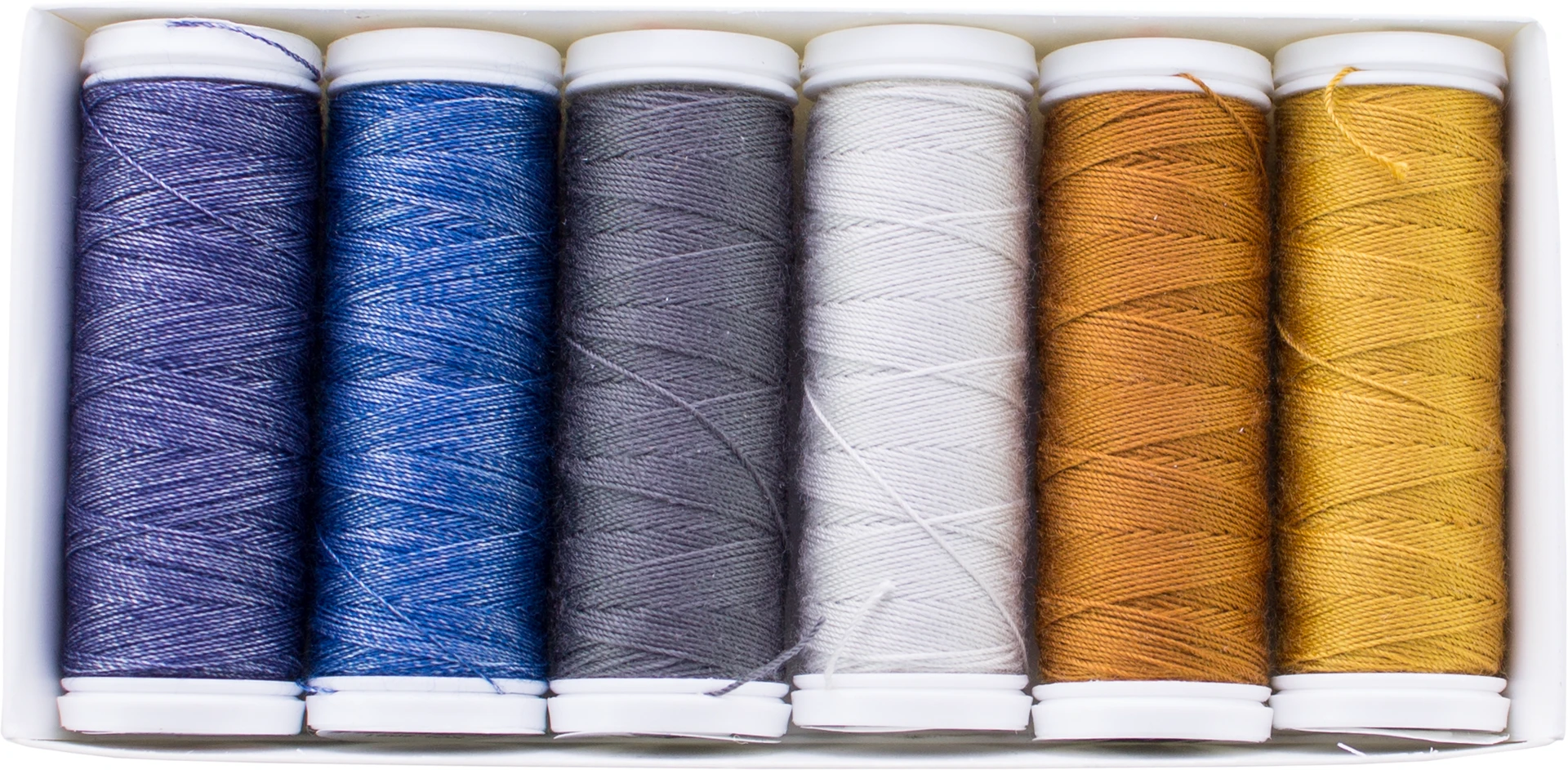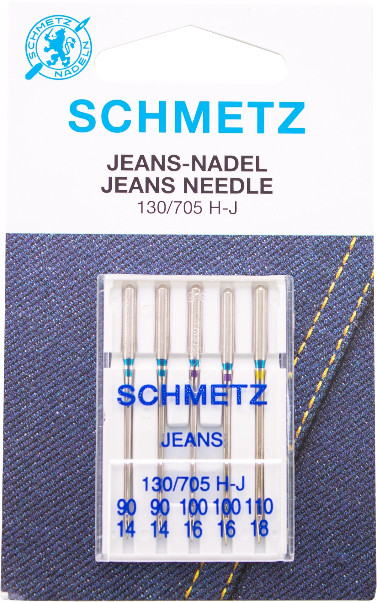 Vysoce kvalitní jehly na džíny dokáží bez námahy proniknout i dvojitými švy. Plochá destička pro šití zajišťuje čistý výsledek, sada obsahuje 6 klasických barev džínsových nití.