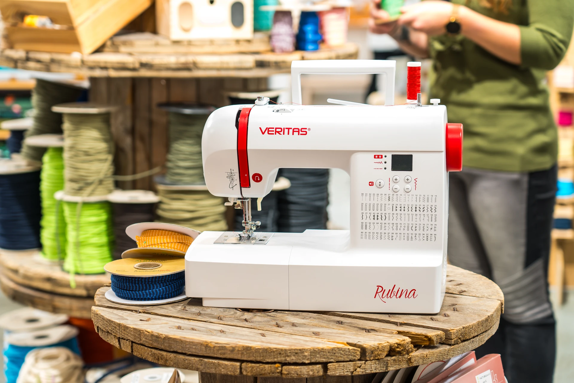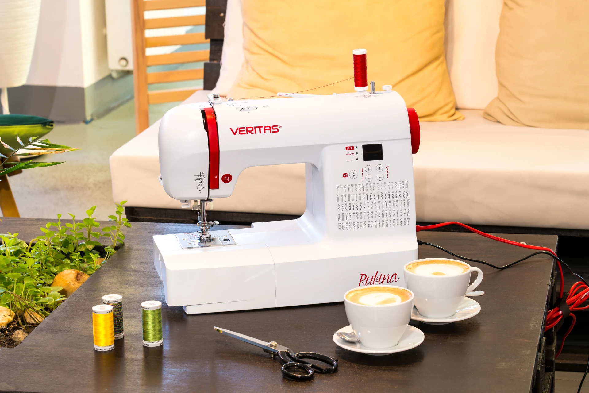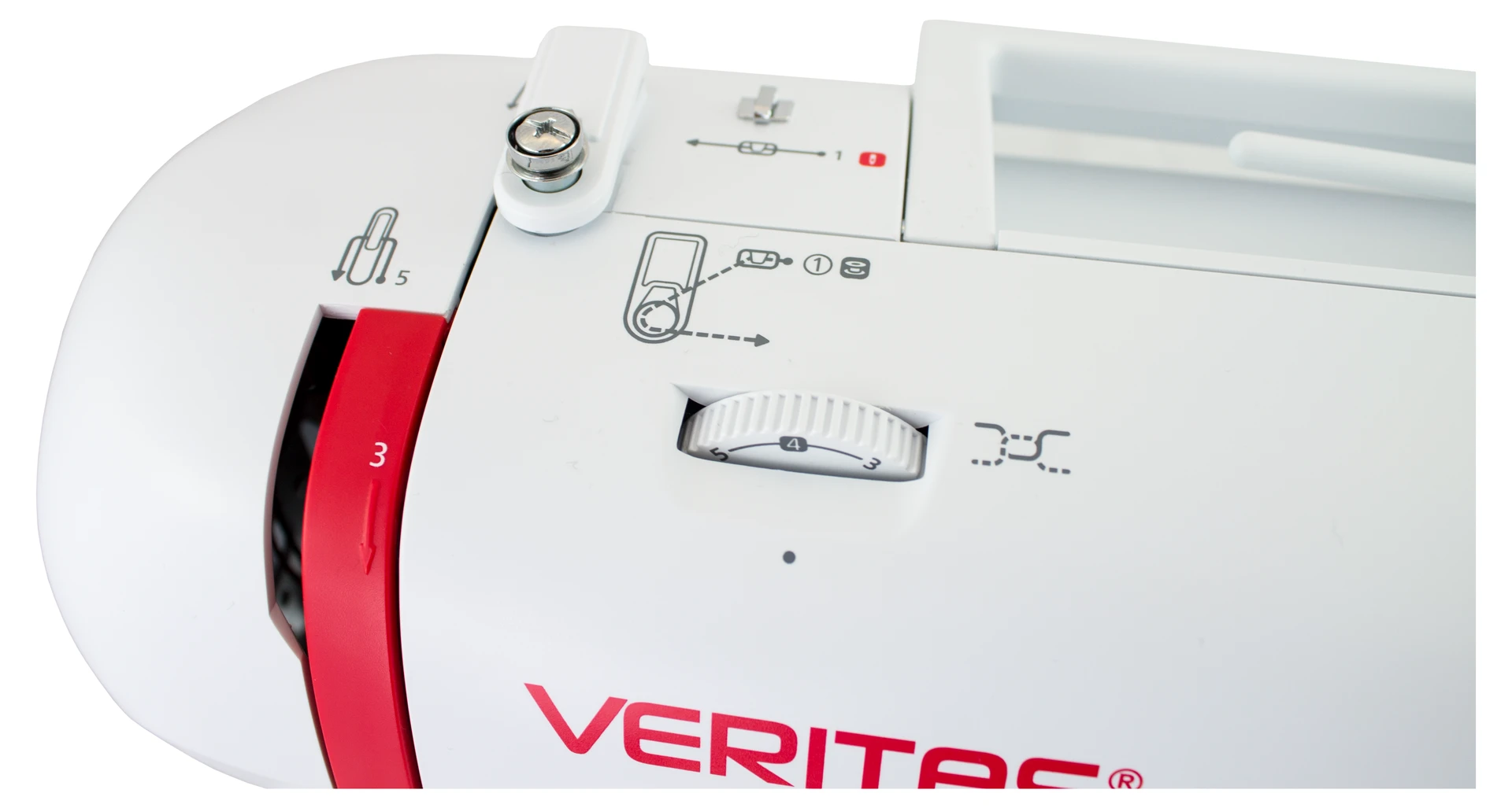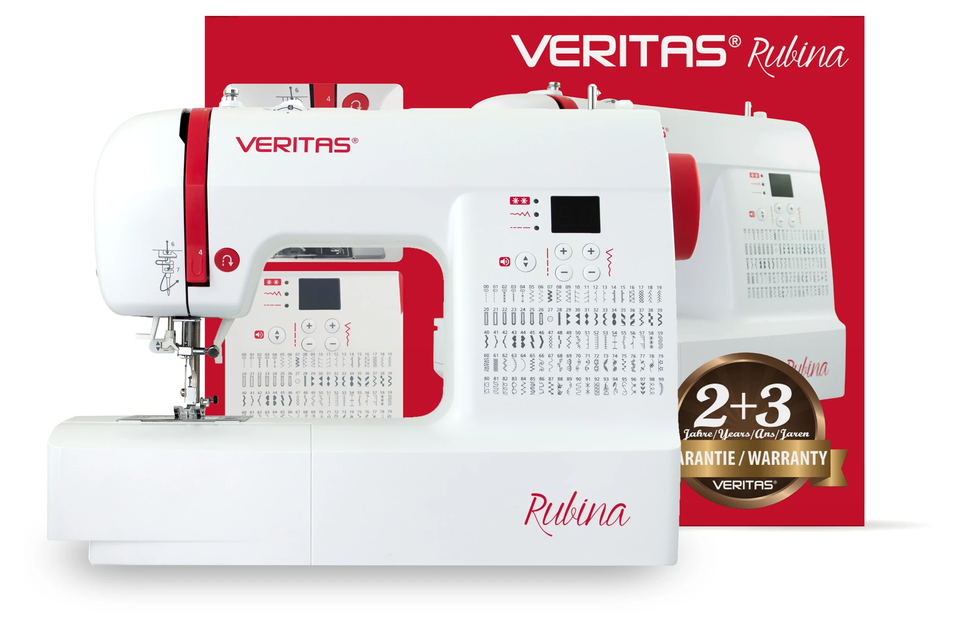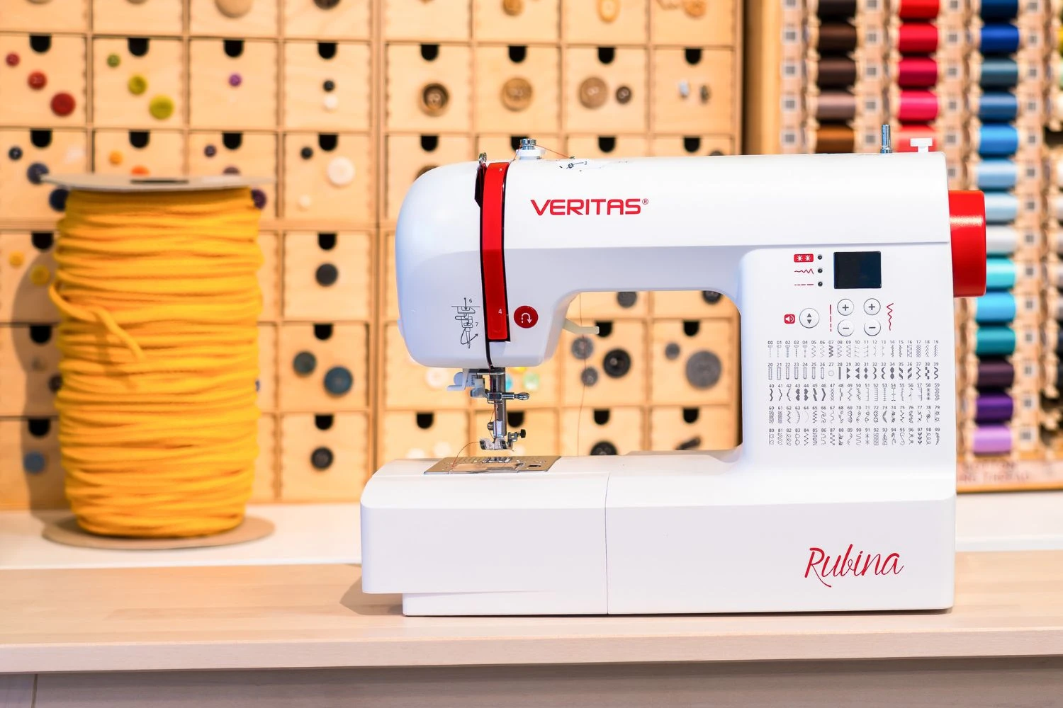 Vybavený 100 šicími programy, které zahrnují užitkové, pružné a overlockové stehy, 7 různých typů knoflíkových dírek a početné dekorativní stehy tak šicí stroj VERITAS Rubina nabízí vše, co potřebujete pro každodenní šití.