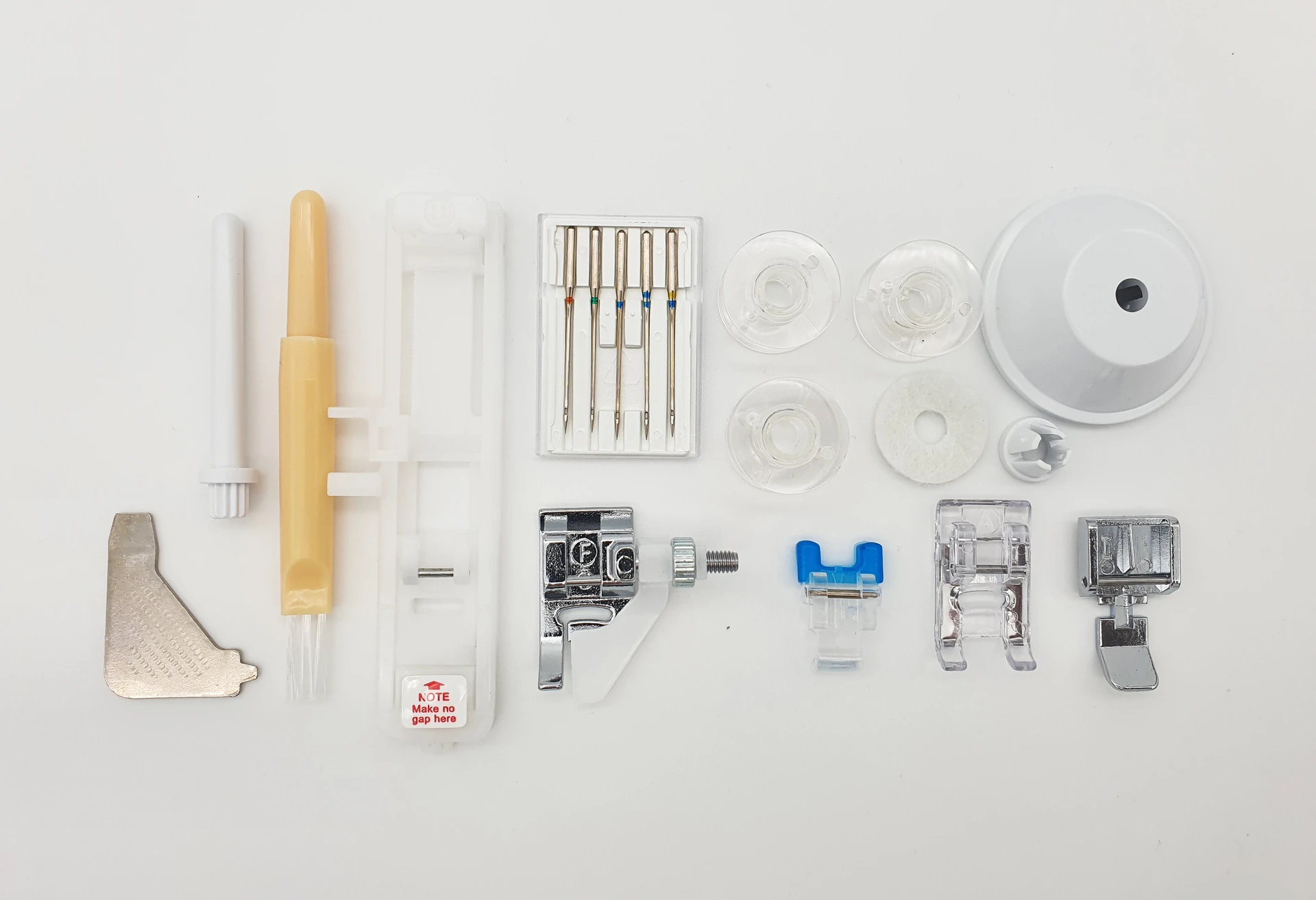 Méně práce, více legrace. Jako velmi praktický oceníte navlékač nitě, který vám ušetří spoustu času jinak stráveného navlékáním jehly a můžete se rovnou věnovat práci. Velký prostor pod ramenem stroje a odnímatelná schránka na příslušenství umožňují snadno šít jak velké kusy látky, tak i úzké rukávy a nohavice. V odnímatelné schránce na příslušenství budete mít vždy po ruce vše, co potřebujete, jako výměnné přítlačné patky nebo náhradní cívky.